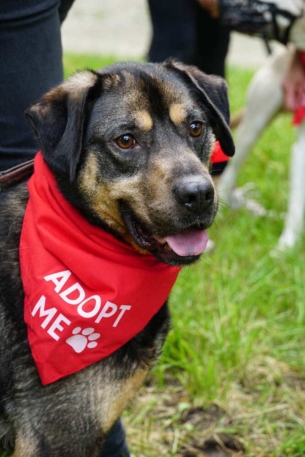 Die Veranstaltung war ein großer Erfolg. Zahlreiche Interessierte konnten unverbindlich verschiedene Hunde kennen lernen, erkenntlich an ihren roten Halstüchern, auf denen „Adopt me“ zu lesen war.