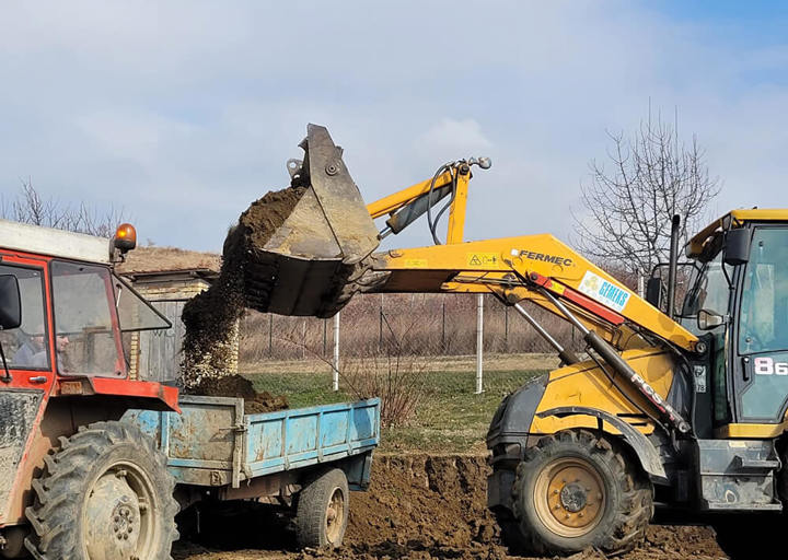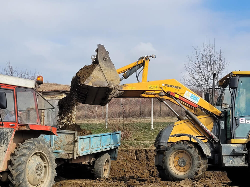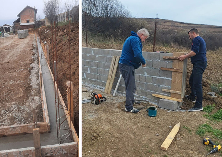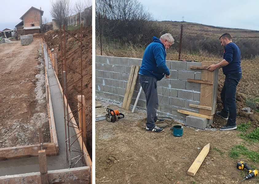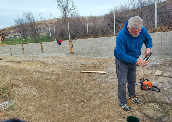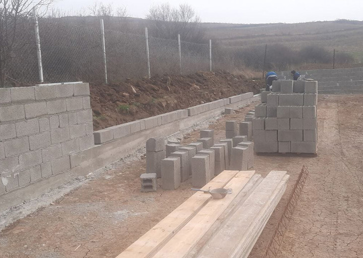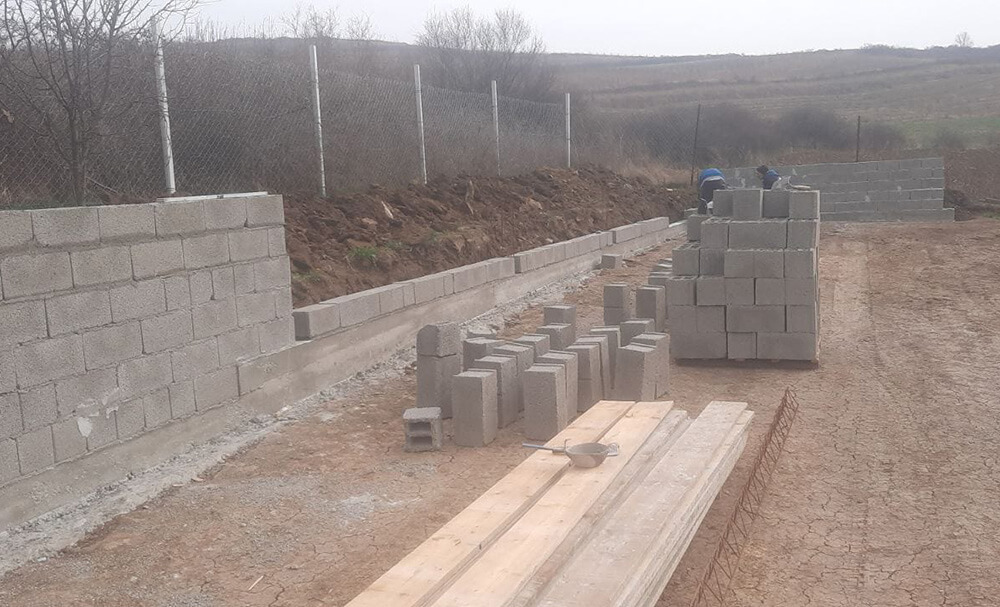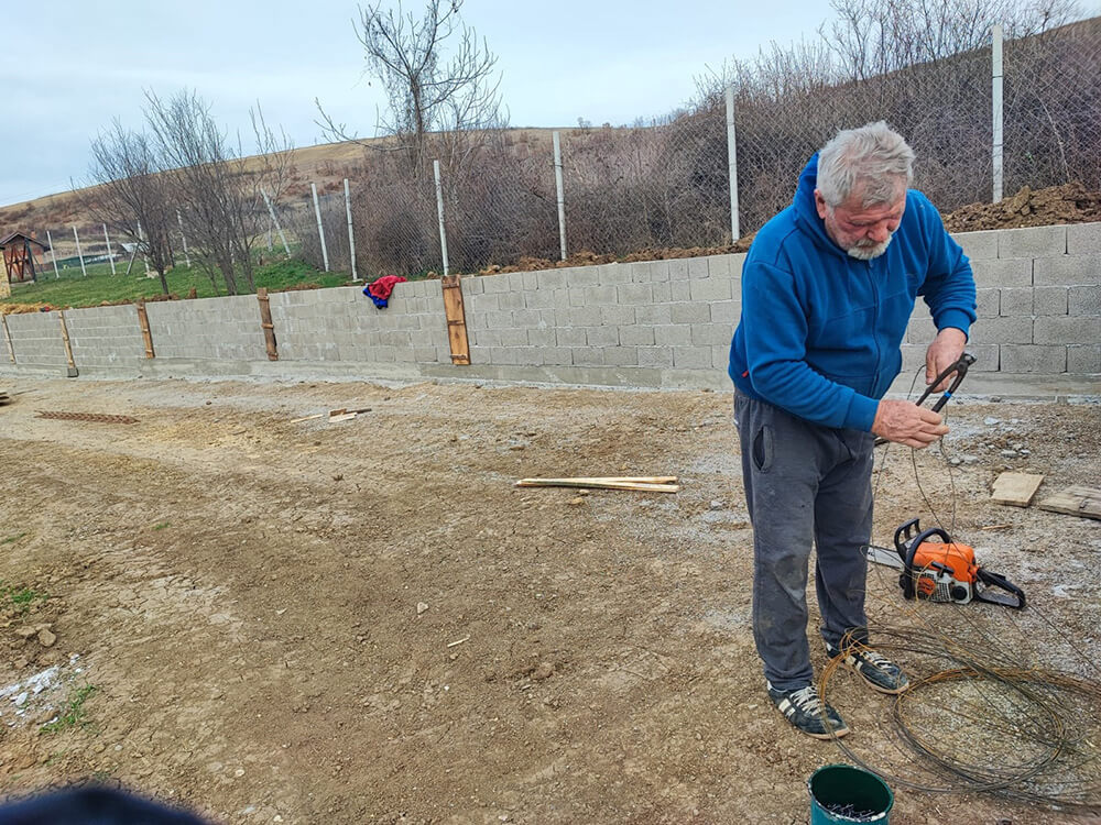 Im letzten Sommer wurde im Tierheim in Svilos ein großes Areal mit alten, sehr baufälligen Gehegen geräumt. Vor ein paar Wochen wurden dort die Bauarbeiten für 11 und später noch 3 neue, moderne Gehege begonnen. Zunächst musste das Gelände in mehrstündiger Baggerarbeit geebnet und überschüssige Erde abtransportiert werden. Jetzt entsteht zunächst eine 35 Meter lange Stützmauer aus Betonblöcken, die die neuen Gehege vor rutschender Erde und Wasser schützen soll.