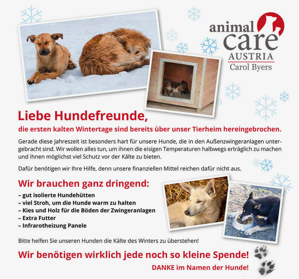 Kalte Wintertage im Tierheim - Spenden Sie Wärme