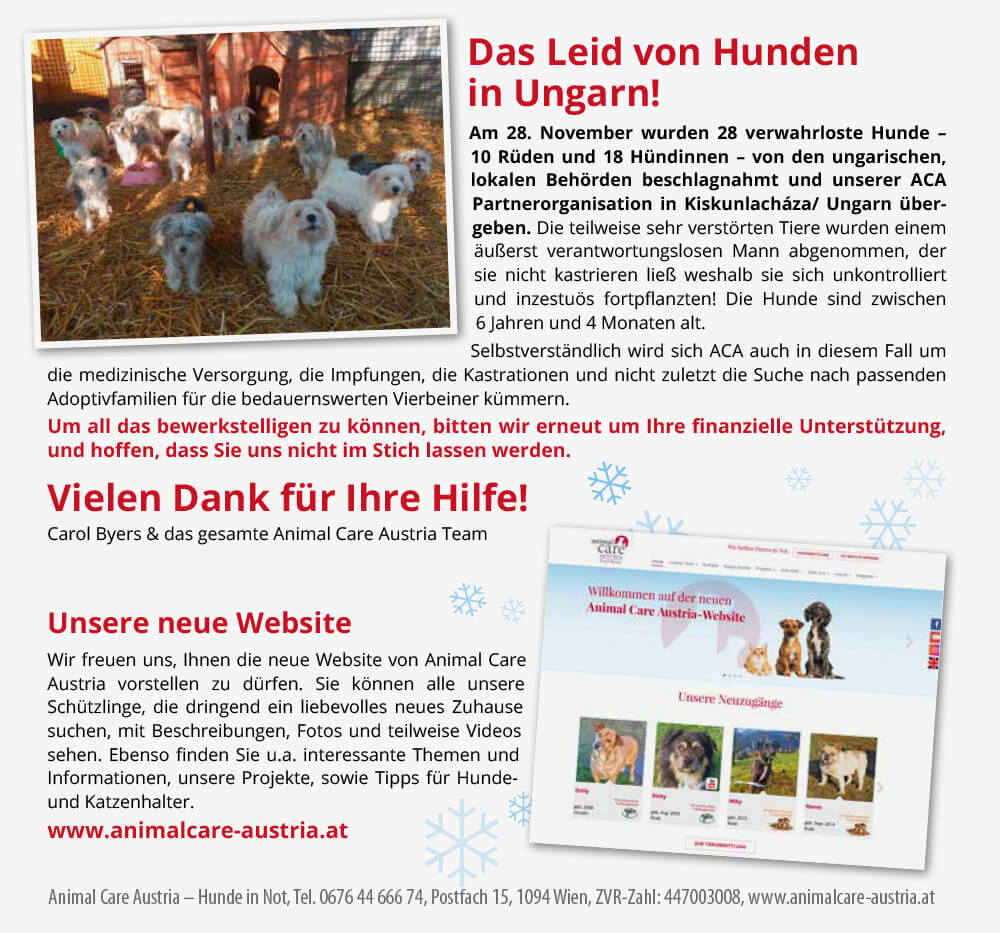 - ACA Report 2023 (Themen: Renovierungen, Neubauten, viele Welpen und endlich Elektrizität im Tierheim Svilos, Serbien, Tierheim Ebsegély/Care Station Ungarn, ACA & Studierende – die Unterstützung geht weiter, etc.)