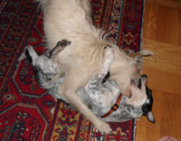 Sie lebt von Tag zu Tag mehr auf. Auch mit unserer anderen Hündin versteht sie sich schon sehr gut ... wenn da nicht der Futterneid wäre :)