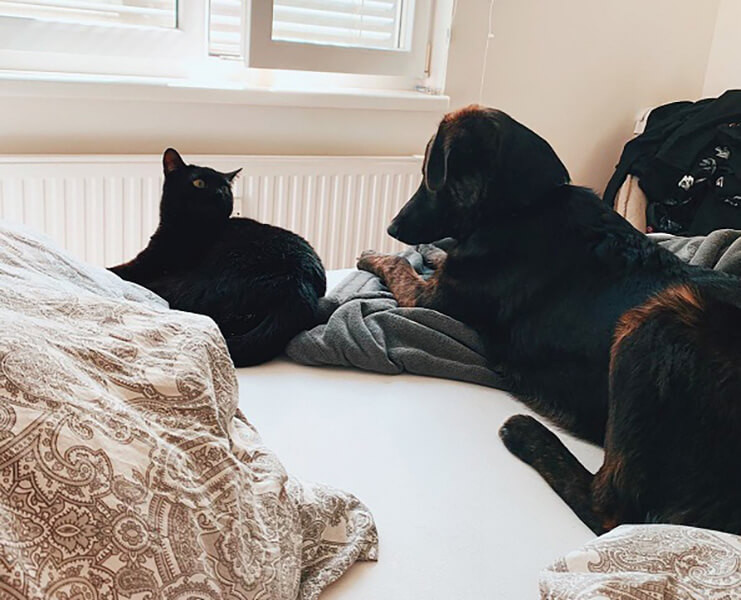 Mit unserer Katze “Honey” ist er schon ganz gut befreundet, generell liebt er Katzen, will sie am liebsten alle beschnuppern und abschmusen, ohne sie zu jagen. Auch in der Hundeschule ist er ganz brav. Hindernisparcour gehen, über Hürden und durch Tunnel, auch an Ablenkungen vorbei, stellen kein Problem mehr dar. So wie es aussieht, können wir den Welpenkurs bald vergessen und den Junghundekurs beginnen. Auch seine Pubertät klopft quasi an der Haustür und nach Erreichen der Geschlechtsreife, steht ihm noch die Kastration bevor.