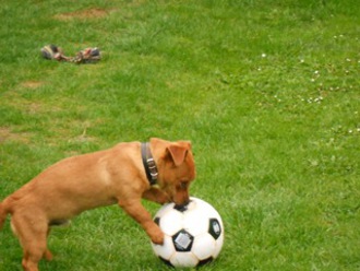 Er ist sehr verspielt und braucht jeden Tag seine Fussballspieleinheit.