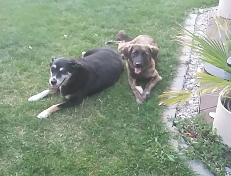 Ein letztes Foto noch von gestern - Alina hat Sera, die Hündin von Frau Grossauer, bereits als Mutterersatz bestimmt. Leider ist das Foto etwas dunkel.