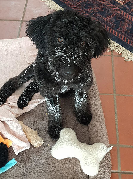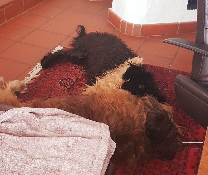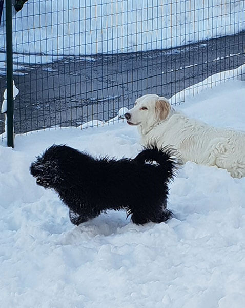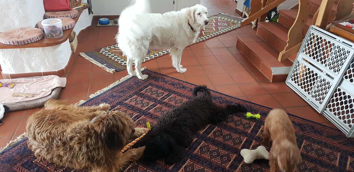 Sie hat sich sehr gut in unser Rudel eingefügt. Sie liebt unsere Bella (Briard), die zwei sind ein Herz und eine Seele.