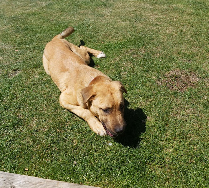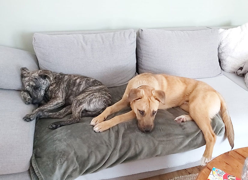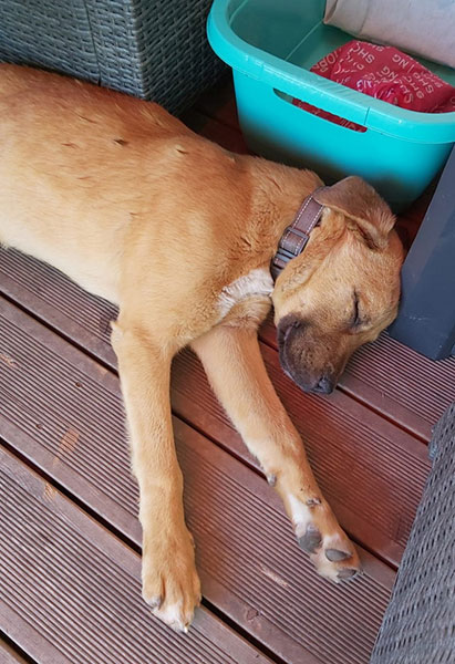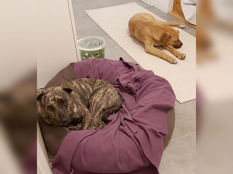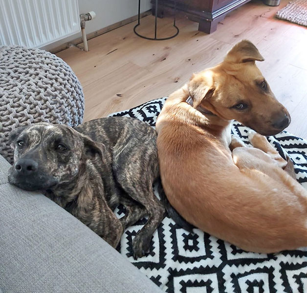 Mit unsrer Hündin Kimi läuft es nach 1-2 Tagen Anfangs-Eifersuchtssituationen (was ja normal ist) auch super, in unsre Tochter ist Amos total verliebt,