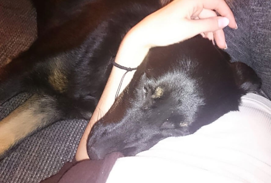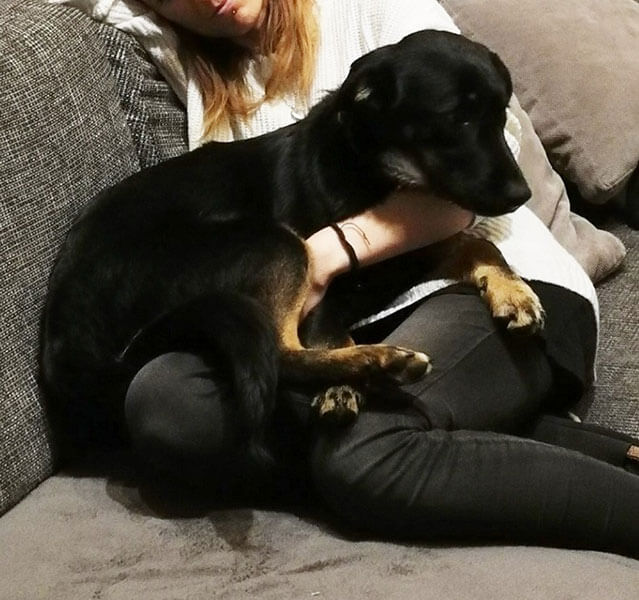 In der Nacht schläft sie brav auf ihrem Platz im Schlafzimmer.
