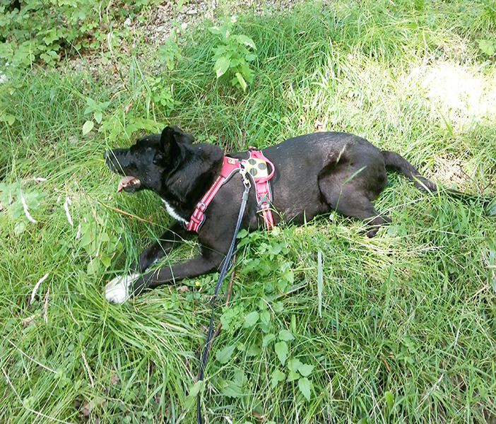 Dann, Anfang Juli, nach 10 Stunden Autofahrt von Serbien nach Wien (danke Tessa!) endlich die 1. Begegnung und gleichzeitig die Frage, wie kriegen wir dich aus dem Auto? Beisst du uns? Nein! Geduldig ließest du dich über die Rampe schieben und ziehen, vorsichtig setztest du Pfote für Pfote ins Ungewisse.
