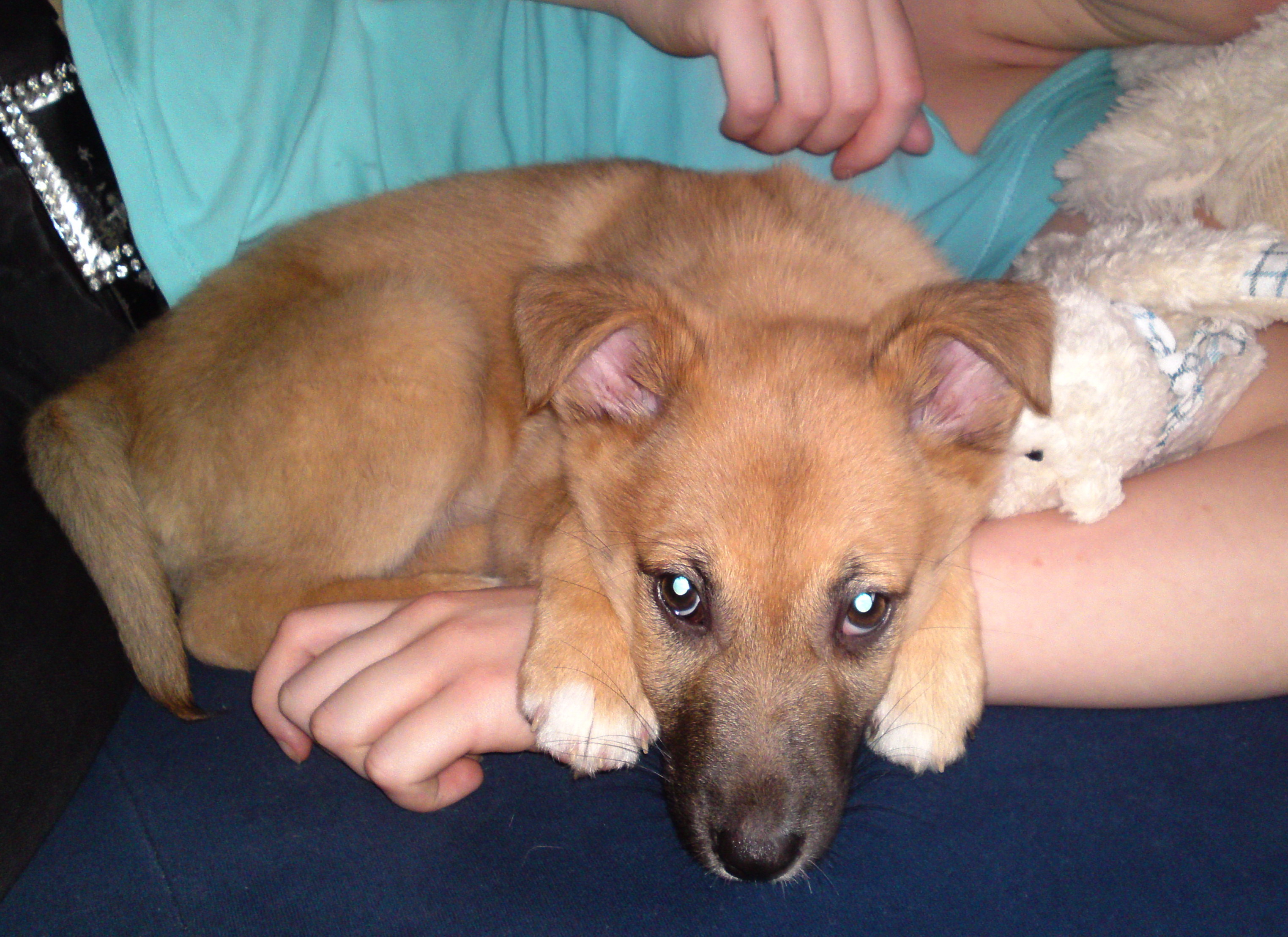Hier ein paar Fotos von unserer Maus. Wir sind einfach überglücklich mit ihr! Ab und zu ist sie noch ein bisschen unsicher beim spazieren gehen, aber sobald sie wieder auf "ihrer" Wiese vor dem Haus ist, ist sie nicht mehr zu bremsen und düst wie eine Wilde herum :) Die Nächte werden auch schon immer ruhiger und sie schläft momentan auch schon so 5-6 Stunden durch, in der Früh ist Azzurra fast nicht aus ihrem Körbchen zu bringen, weil sie eigentlich noch weiterschlafen will. Aber sobald sie merkt, dass das Halsband gebracht wird, ist sie schon voller Vorfreude, dass sie wieder neue Sachen entdecken kann. Natürlich ist unsere Maus der Liebling von jedem, egal ob es fremde Menschen auf der Straße sind oder unsere Familie, mit ihrer fröhlichen und offenen Art, hat sie alle innerhalb von einer Minute um die Pfote gewickelt. Wenn sie ihre "narrischen 5 Minuten" hat, ist nichts mehr sicher vor ihr. Am liebsten stiehlt sie dann das riesen Plüsch-Schaf von der Couch, zieht es in ihr Körbchen und versteckt sich dann dahinter, damit sie überraschend hervorspringen kann, wenn wir sie rufen. :) Alles in allem ist sie ein kleiner süßer Schlingel, die in der kurzen Zeit, in der wir sie bis jetzt haben unseren Alltag um vieles bereichert und noch lustiger gemacht hat.