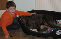Er hat sich total super gegenüber den Kindern und der Katze verhalten. Mein Mann und unser 4jähriger haben sogar schon ein Küsschen bekommen.