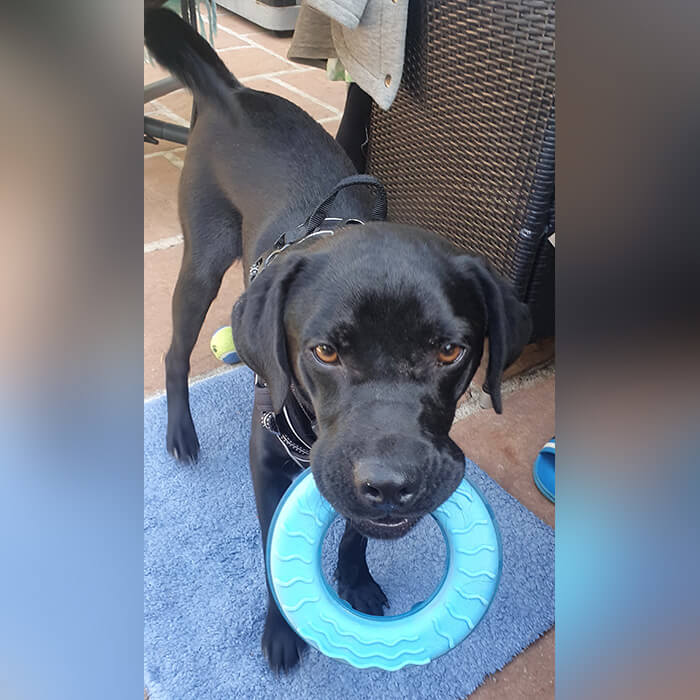 Mit der Hündin von unserem großen Sohn versteht er sich super. Er hat sie gestern kennengelernt und sie sind schon durch den Garten geflitzt. Die Katzen mag er auch - die beiden halten Abstand zu ihm aber sind doch interessiert.