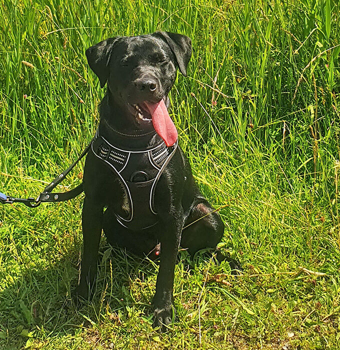 Er hört schon auf seinen Namen, das Futter schmeckt ihm. Spazierengehen funktioniert auch ganz gut.