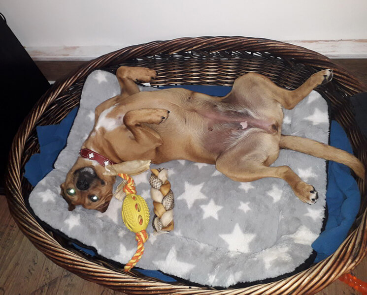 Bambi hat sich schon super eingelebt. Wir haben eine riesen Freude mit ihr. Gassi gehen funktioniert super. Sie zeigt keinerlei Angst von vorbeifahrenden Autos Busse oder Mopeds. Bellende Hunde am Zaun lassen sie auch kalt.