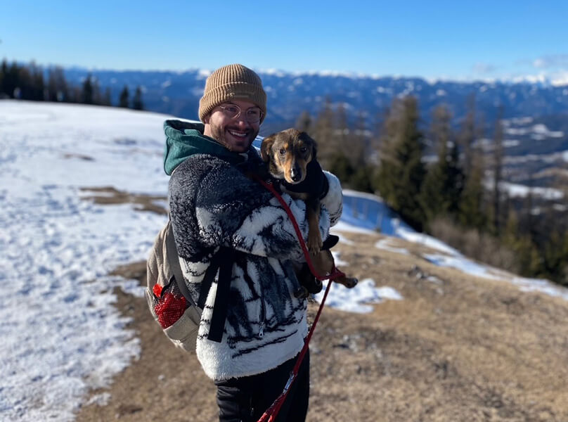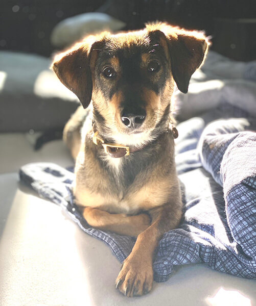 An Wochenenden kann er sich zu aller Freude am Bauernhof meiner Eltern austoben, wo er sich gerne unter dem Magnolienbaum sonnt.