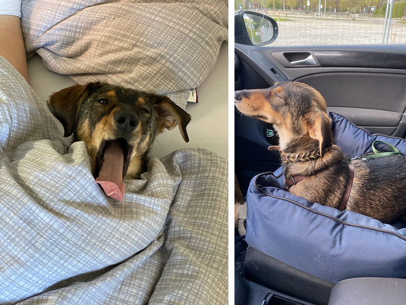 Anfangs hatten wir Problemchen mit seinem Gewicht und der Stubenreinheit. Beides hat sich aber schnell eingependelt, denn der liebe Beany wiegt jetzt 9,5 kg anstatt der anfänglichen 7 kg, was wahrscheinlich seinen Drang das Futter zu verschlingen verursacht hat. Aus der Wohnung will er vormittags sowieso mal nicht… muss man den kleinen Schlingel regelrecht von seinem Glück überzeugen.
