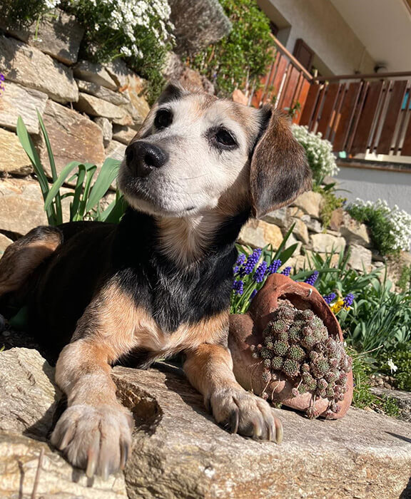 Bella, ein am 1. März 2010 geborener Beagle-Dackel-Mix, kam damals durch die Vermittlung von Claudia Böhm zu mir und meiner damaligen Partnerin. Auch wenn sie vor etwa zwei Jahren an Diabetes erkrankte und man mittlerweile bemerkt, dass sie langsam älter wird, ist sie immer noch sehr aktiv, fit und freundlich. Ihre fast 15 Jahre sieht und merkt man ihr wirklich nicht an! Bella ist nach wie vor für jedes Abenteuer zu haben und liebt es, die Welt zu erkunden.