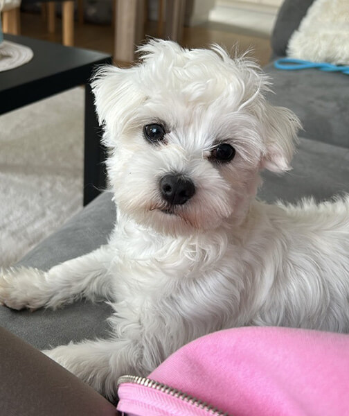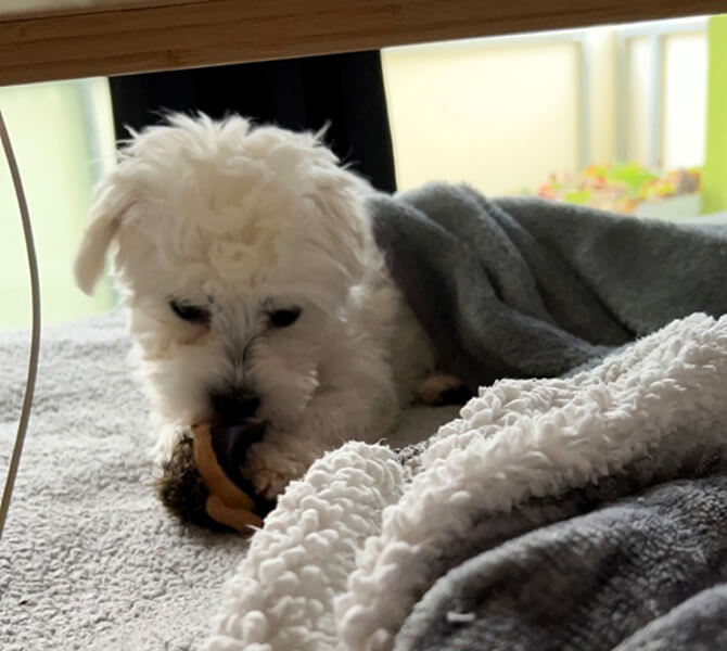 Er ist überall dabei, liebt es zu spielen & seine Kuscheleinheiten. Auch die ersten Hundefreunde haben wir schon. Er gehört schon perfekt hierher.