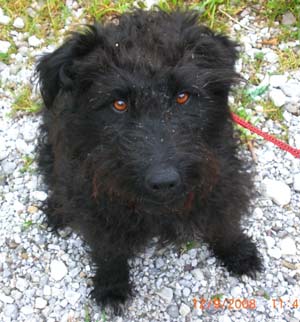Benji geht es sehr gut, er macht uns viel Freude. Im Hundegarten fühlt er sich sehr wohl, hat auch schon 2 Freundinnen. Er folgt total brav, wir können ihn schon frei laufen lassen (auf den Wiesen und Feldern in unserer Nähe). Wir sind jetzt draufgekommen, daß er ein sogenannter Pulmi-Mix ist, d.h eine Mischung zwischen Puli und Pumi = ungarische Hirtenhunde).