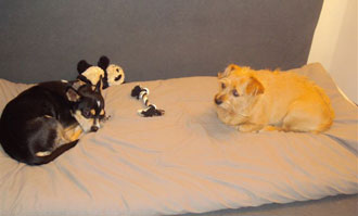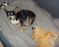 Auch mit meiner ziemlich frechen Katze Hexi kommt Benni klar, indem er sie einfach ignoriert. Wie die Fotos beweisen, sind Lara und Benni bereits gute Freunde.
