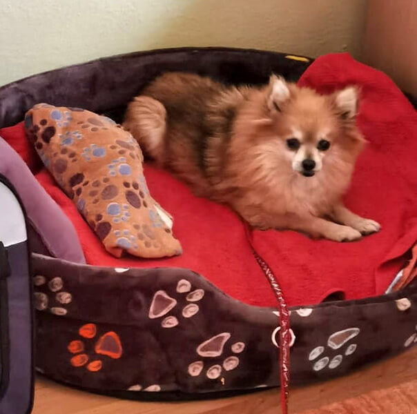 am Freitag hat Bibi die Hundebox verlassen und ist von der Box ins Hundebett gesiedelt, das nun ihr Rückzugsort ist. Im Haus läuft sie frei herum, versucht weder zu flüchten noch sich zu verstecken.