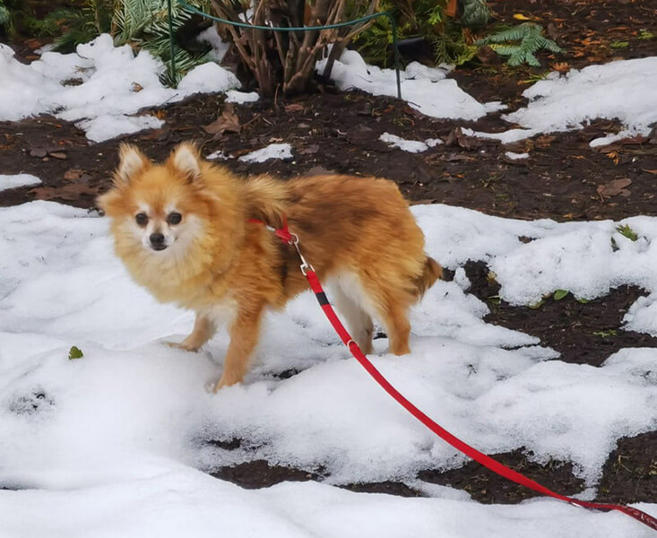 Und noch eine Erfolgsmeldung: sie läuft im Garten schon frei herum, die Leine zieht sie hinterher, sodass ich sie jederzeit einfangen kann.