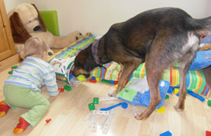 Billy konnte im August noch überhaupt nichts mit einem Ball oder sonstigen Spielzeug anfangen und schreckte bei jeder kleinsten schnellen Bewegung zusammen.