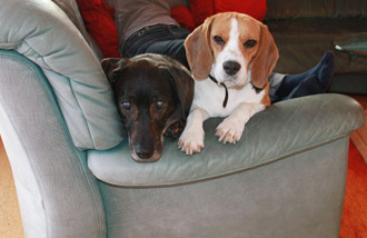 1. Foto: 3 Tag in Bimbis neuer Familie, wem die Wohnzimmercouch gehört sieht man ja. Sind sie nicht ein super schönes Paar unser Jerry und unser Sonnenschein Bimbi?