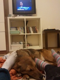 Gruppenkuscheln beim Fernseh-schauen.