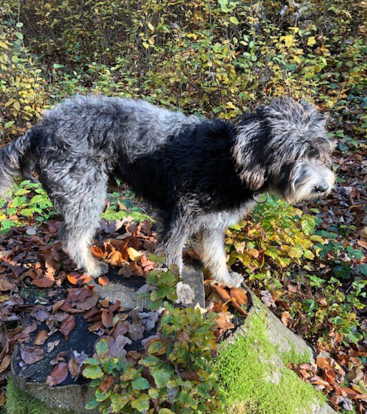 Er entwickelt sich prächtig, ist sehr neugierig und macht seinem Namen alle Ehre; seinen Namen Boggetsch haben wir von bakkecske abgeleitet, da er sich als kleiner Welpe beim An-Der-Leine-Gehen wie ein widerwilliges Ziegenböcklein verhalten hat. Die täglichen Spaziergänge und das Herumtoben mit Boggetsch im Garten macht uns sehr viel Freude! Sein wolliges Fell, sein Erscheinungsbild und seine Art sprechen sehr dafür, dass er ein Pumi bzw. Pumi-Mischling ist.