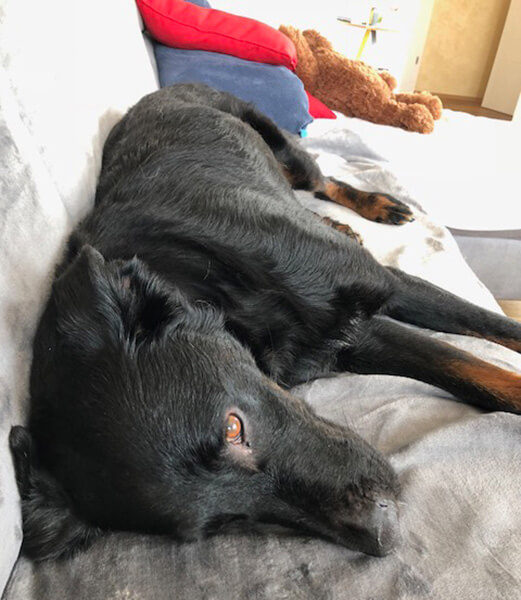 Beide hunde verstehen sich prima und wenn einer allein raus geht, weint der andere - so süss.