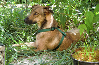 Ihr Tipp, Carol, mit dem Futter war sehr gut. In der Früh füttert Renate die Hunde. Am Abend mache ich das. Bonita bekommt jetzt ihr Fressen aus dem Napf, den ich in der Hocke sitzend, mit beiden Händen hinhalte. Langsam gewöhnt sie sich daran, kommt und bleibt.