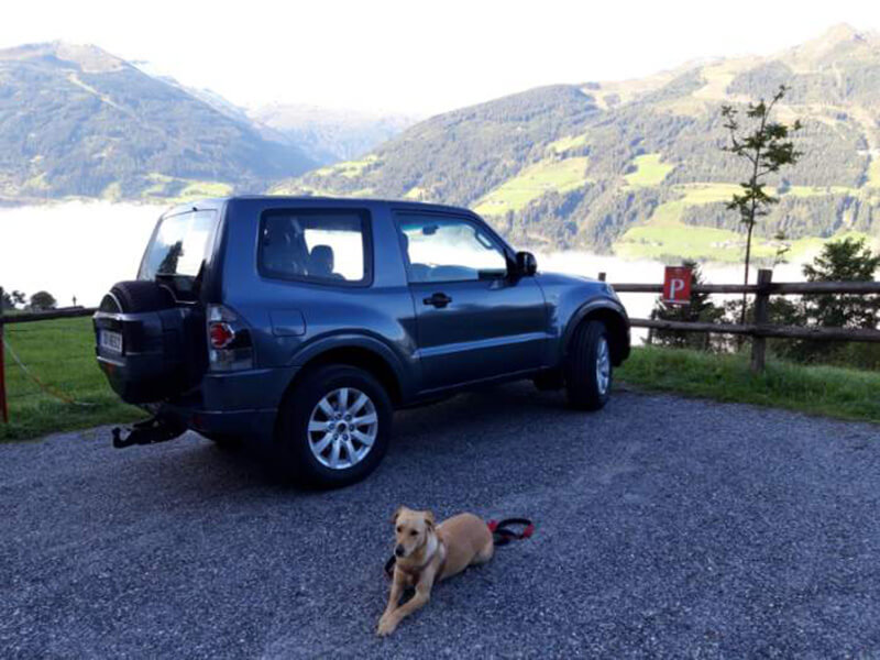 Wir haben daher statt einem neuen Suzuki Jimny einen Mitsubishi Pajero gekauft - damit Bonny auch bei Bergfahrten genug Platz hat (der Kofferraum mit Hundegitter gehört ihr, keine Hundebox). Was macht man nicht alles für seine Familiemitglieder...