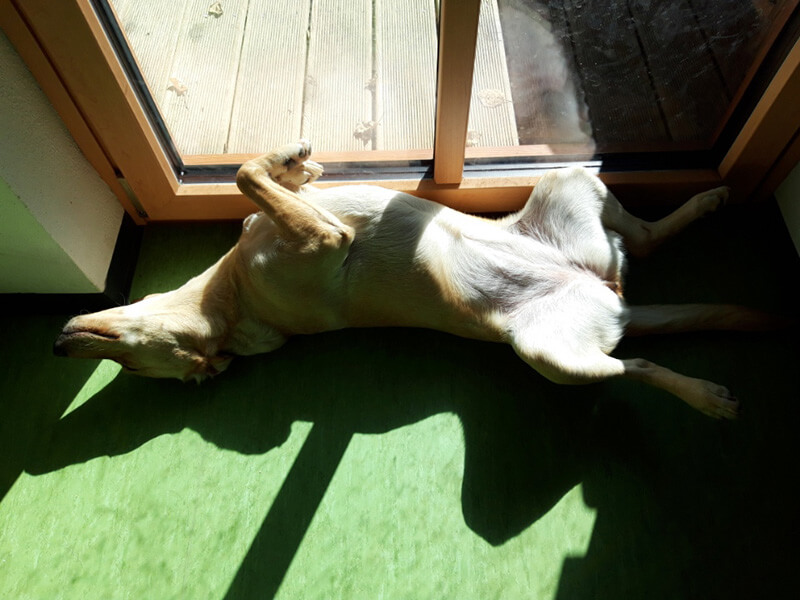 Die Fotos vom Mittagsschlaf und morgendlichem Spaziergang zeigen das.