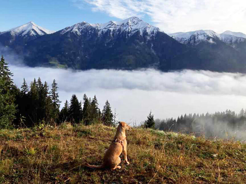 Bonny auch in Innsbruck dabei und unterwegs zum morgendlichen Spaziergang.