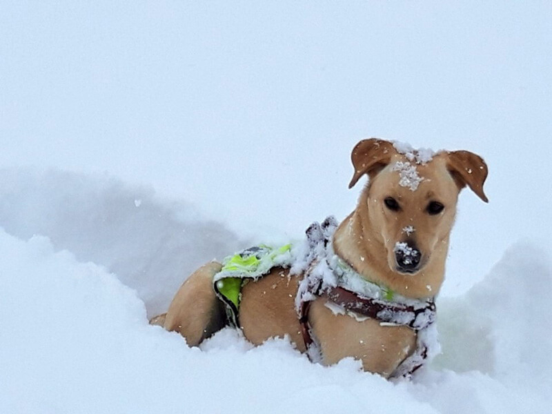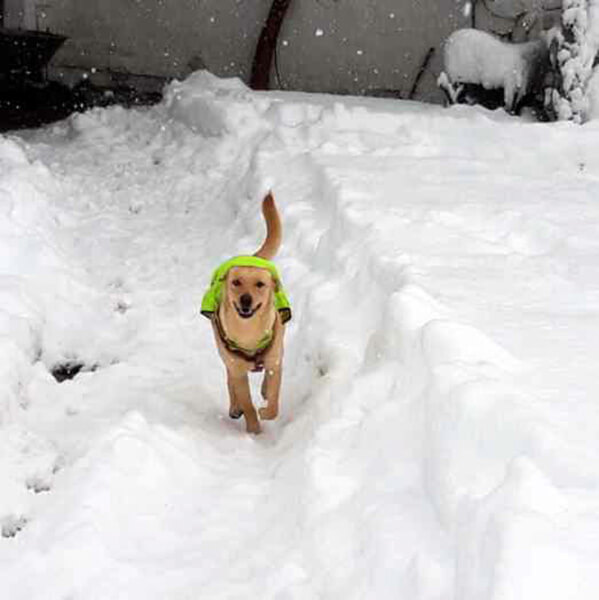 Bonny liebt den Schnee! Heute Morgen hatten wir schon 40 cm und es schneit immer noch.