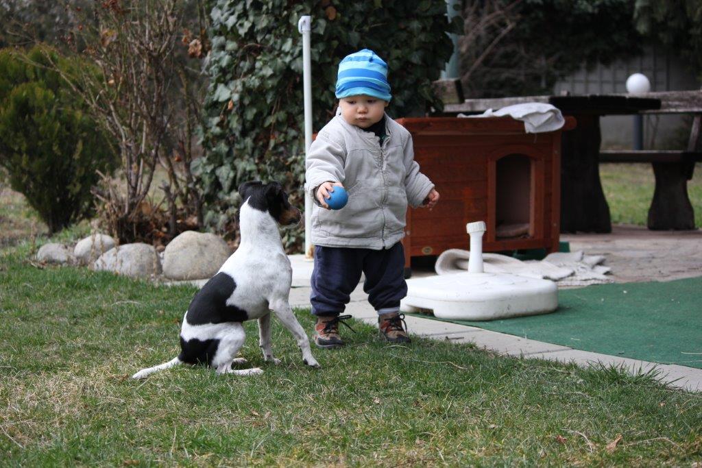 heute vor 2 Jahren ist Boogie bei uns eingezogen. Ich möchte zu diesem Anlass wieder einmal kurz über sie berichten. Sie ist noch immer der bravste und liebste Hund der Welt! Als vor einem Jahr mein Sohn auf die Welt gekommen ist, hatte ich ein bisschen Bedenken ob Boogie mit so einem kleinen Menschen zurecht kommen wird. Und ich kann Ihnen nur sagen, aus unserer – vor 2 Jahren - noch schnappigen Terrierdame ist ein absolut lieber, geduldiger Babysitter geworden! Boogie hat sämtliche „Angriffe“ meines Sohnes - wie Ohrenzwicken, Schwanzziehen und Sonstiges geduldig ertragen. (ich war leider nicht immer schnell genug, meinen Sohn von ihr fern zu halten). Mittlerweile weiß der junge Mann, wie er sich ihr gegenüber verhalten muss. Er kuschelt sich oft zu ihr, legt seinen Kopf zu ihrem. Er setzt sich zu ihr und streichelt sie, spielt mit ihr Ball. Diese beiden werden einmal ein ganz tolles Team. Seit mein Sohn die Lade mit Boogies Leckerlies gefunden hat, ist die Liebe natürlich ganz perfekt. So viele Extraportionen hat Boogie schon lange nicht mehr bekommen!