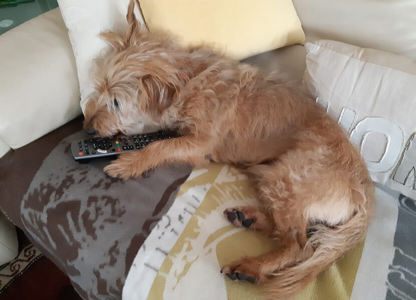 In der Betäubung wurde die Spritze gesetzt, dann durfte er schon wieder aufwachen. Benommen ist er mir gleich zu einem Spaziergang gefolgt. Nach der Narkose aber war er den ganzen Tag „seltsam“ – er hat keine Ruhe gefunden, den Platz immer gewecheselt und gesungen… Erst dachte ich, er hätte Schmerzen. Dr. Leschnik aber hat mir erklärt, dass das die psychischen Nachwirkungen der Betäubung mit einem Opiat sind. Bild könnte enthalten: Hund und Innenbereich