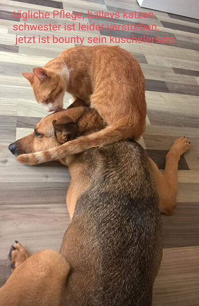 Im April 2008 kam sie zu uns und hat unser Leben seitdem bereichert, nun ist sie eine alte Dame, ständig unter ärztlicher Kontrolle um nichts zu übersehen, und genießt vollste Aufmerksamkeit. Seit 2 Jahren war sie keinen Moment alleine.... wir hoffen wir haben noch ein bisschen Zeit mit ihr.