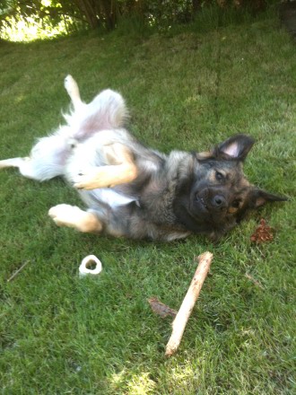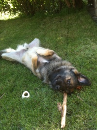 Jedenfalls bringt er uns täglich zum Lachen, er ist überhaupt ein sehr herzlicher Hund, der sich sofort ins Herz aller Menschen wedelt :)