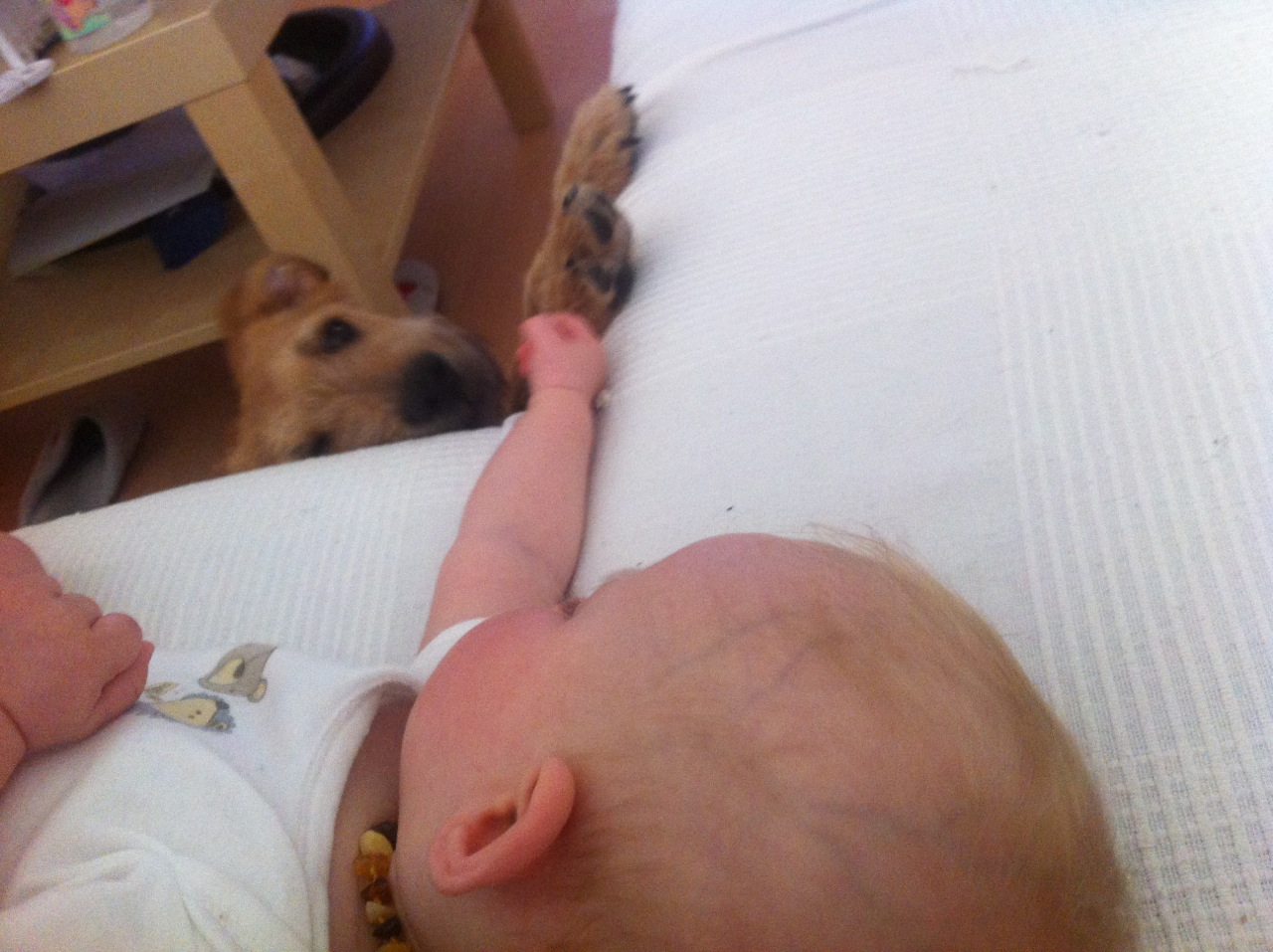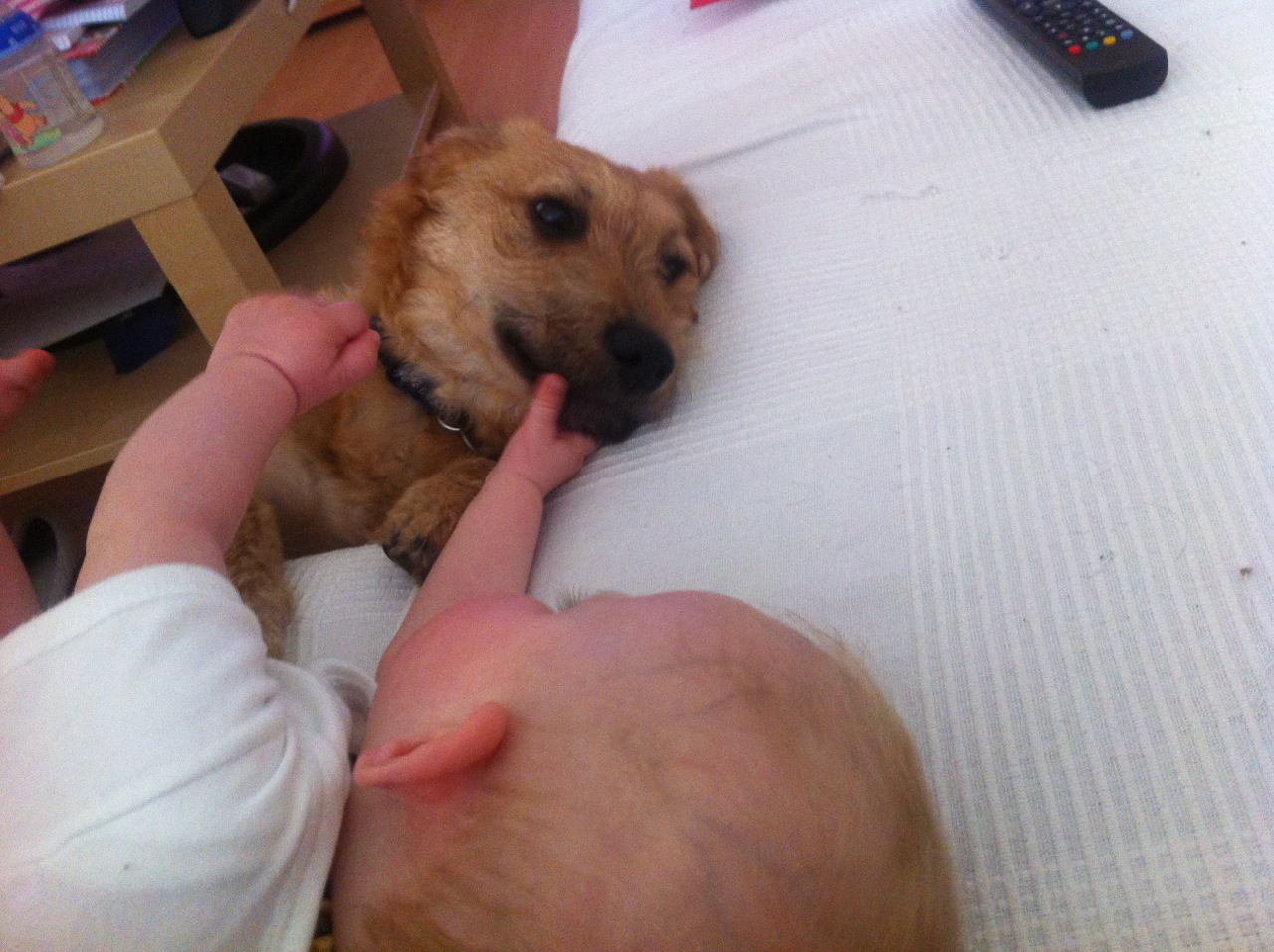 Wir haben uns schon langsam eingespielt auf einander!! Bam Bam der mittlerweile Buddy heißt scheint sich bei uns recht wohl zu fühlen!! Er ist schon fast stubenrein ( hin und wieder sind wir ihn zu langsam in der Früh ) und geht sehr brav an der Leine! Mit unseren Katern kommt er auch gut zurecht, sie gehen sich die meiste zeit aus dem weg. Unsere Tochter hat er auch recht gern, immer wenn wir sie hin halten muss er ganz viele Küsschen verteilen.
