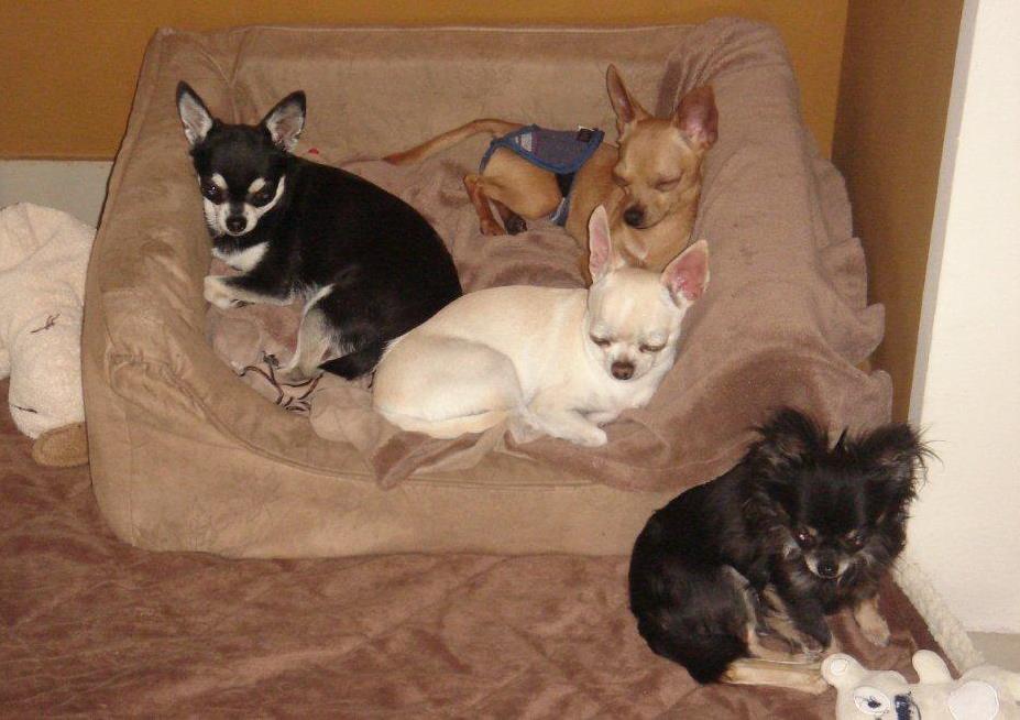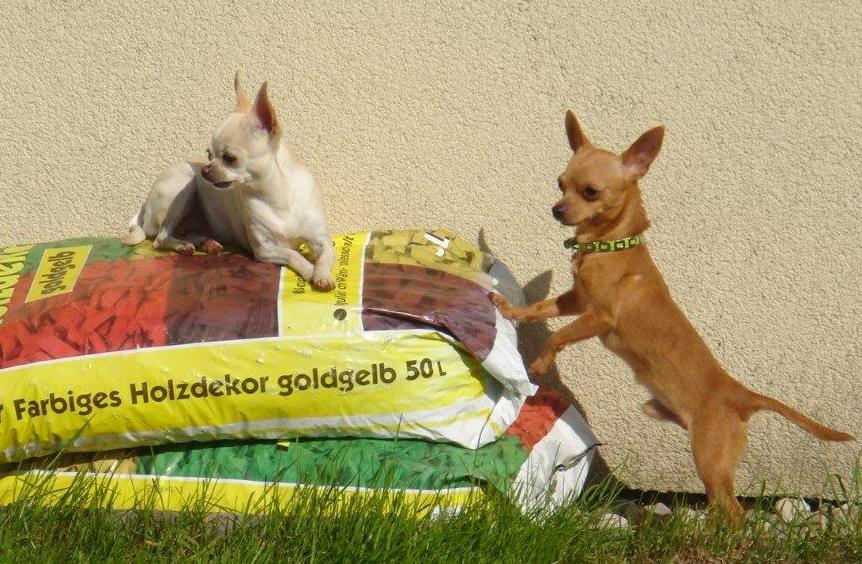 Wie versprochen einen kleinen Bericht über Cadi´s Einzug und seine erste Woche bei uns. Das schönste Muttertagsgeschenk war Cadis Abholtermin. Der schüchterne kleine Mann ist schon bei der Heimreise im Auto eingeschlafen. Kaum zu Hause angekommen, haben wir Ihm die Möglichkeit gegeben Haus undGarten alleine (ohne unserem Rudl an Chi´s) zu erkunden. Unsere ältereste Chi-Hündin hat Cadi von der ersten Minute an voll angenommen und ihn wie seine Mutter umsorgt. Mona und Lillyfee haben den Neuankömmling anfänglich von der Entfernungbeobachtet, doch am zweiten Tag war es bereits so, als ob Cadi schon länger bei uns sei. Unser Rudl hat ihm den Start in unserer Familie enorm erleichtert! Cadi kannte durch seine schlimme Vergangenheit außer Angst u. Misstrauen nichts. Er hatte ja offensichtlich die so wichtige Prägephase und Sozialisierung in den ersten Wochen seines noch kurzen Lebens nicht erfahren dürfen. Um so schöner und spannender erleben wir jetzt jede einzelne Minute mit dem „kleinen Mann“. Es ist so toll zu sehen, wie er stündlich selbstsicherer wird und den Kontakt ganz bewusst zu uns sucht. Nie hätten wir es für möglich gehalten, dass Cadi so schnell uns sein Vertrauen schenkt. Cadi geht jeden Vormittag mit mir und den anderen Hunden ins Büro und ab Mittag sind wir im Garten und genießen die Zeit zusammen. Er liebt es Autozufahren und möchte überall sein wo wir sind, daher nehme ich Ihn auch überall mit.