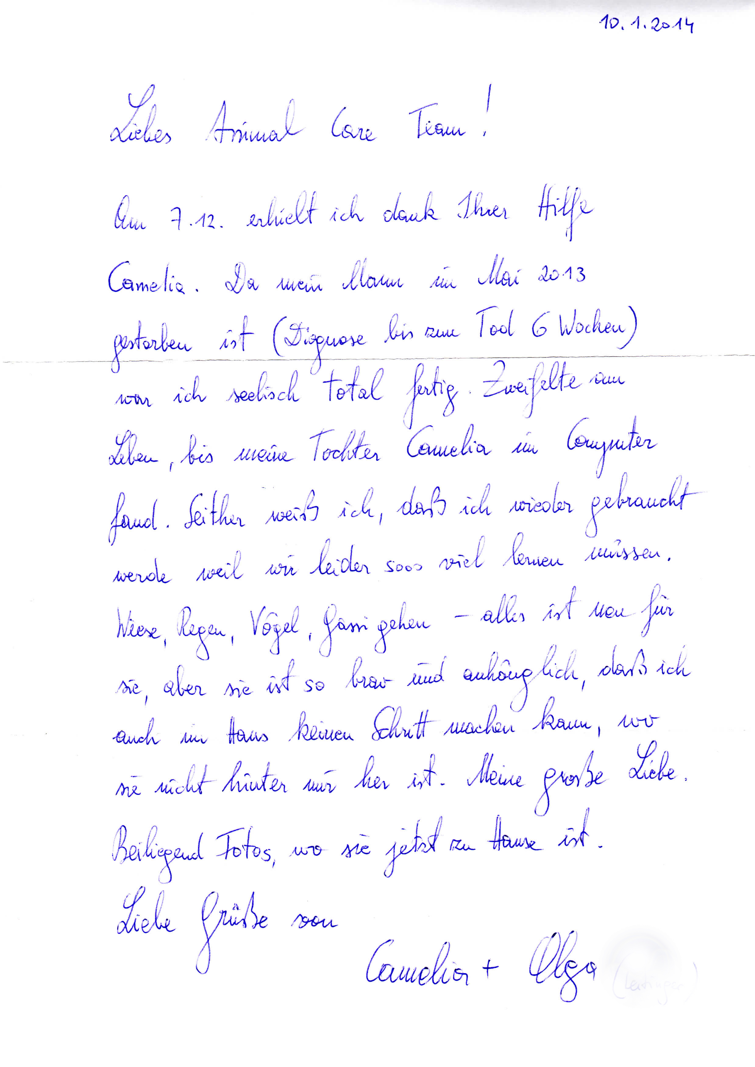 Am 7.12. erhielt ich dank Ihrer Hilfe Camelia ...