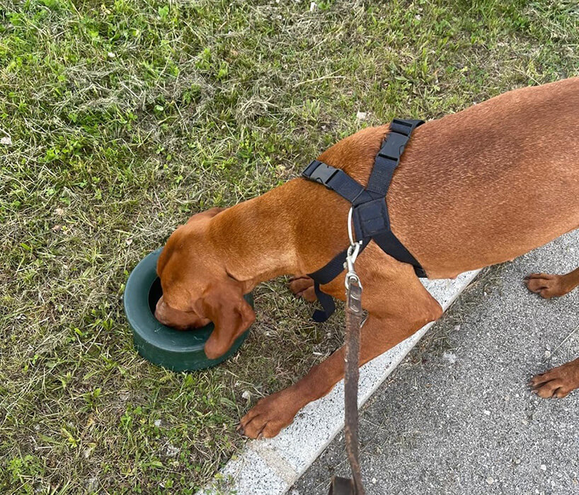 Gestern erste Schulversuche: Grundgehorsam, Leinenführigkeit geht noch im Überschwang unter.