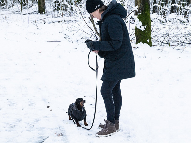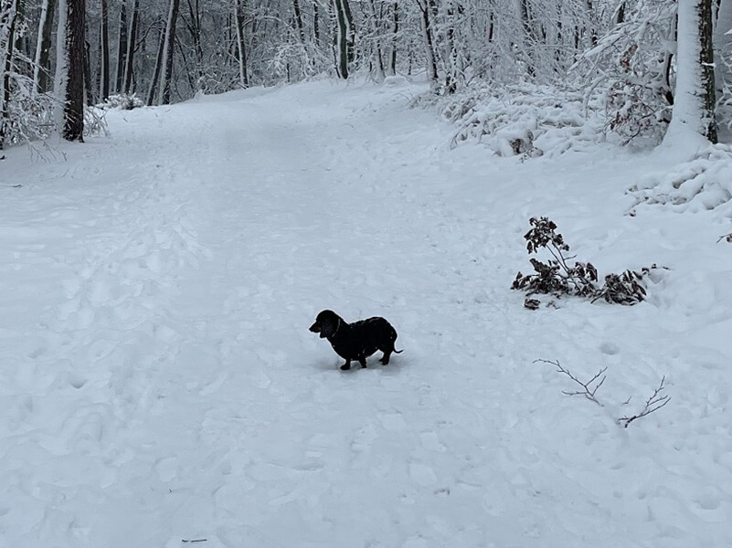 Wir haben ihr inzwischen den Tagesablauf etwas vorgegeben: Morgens um halb acht, kurz Gassi gehen und die Blase entleeren. Dann so gegen 9:30 die große Runde durch unseren herrlichen Schneewald. Dann frühstücken. Da macht sie gerade ein wenig Probleme, weil ich ihr zur Belohnung immer mal ein Stück Frankfurter Würstchen gebe und die liebt sie über alles und meint die müsste es auch zum Frühstück geben.