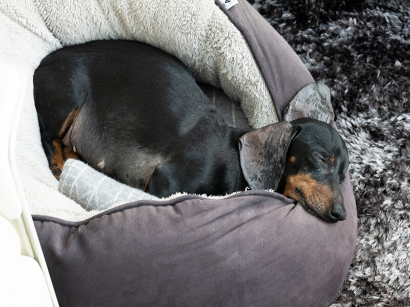 Mittags gehen wir dann wieder eine halbe Stunde spazieren und dann am frühen Abend nochmals. Am späten Abend meldet sie sich dann wenn Sie ins Bett will. Wir nehmen Sie dann mit in unser Schlafzimmer und in Ihrem Körbchen schläft sie dann glücklich ein. Ein wenig Schnarchen gehört bei ihr dazu.