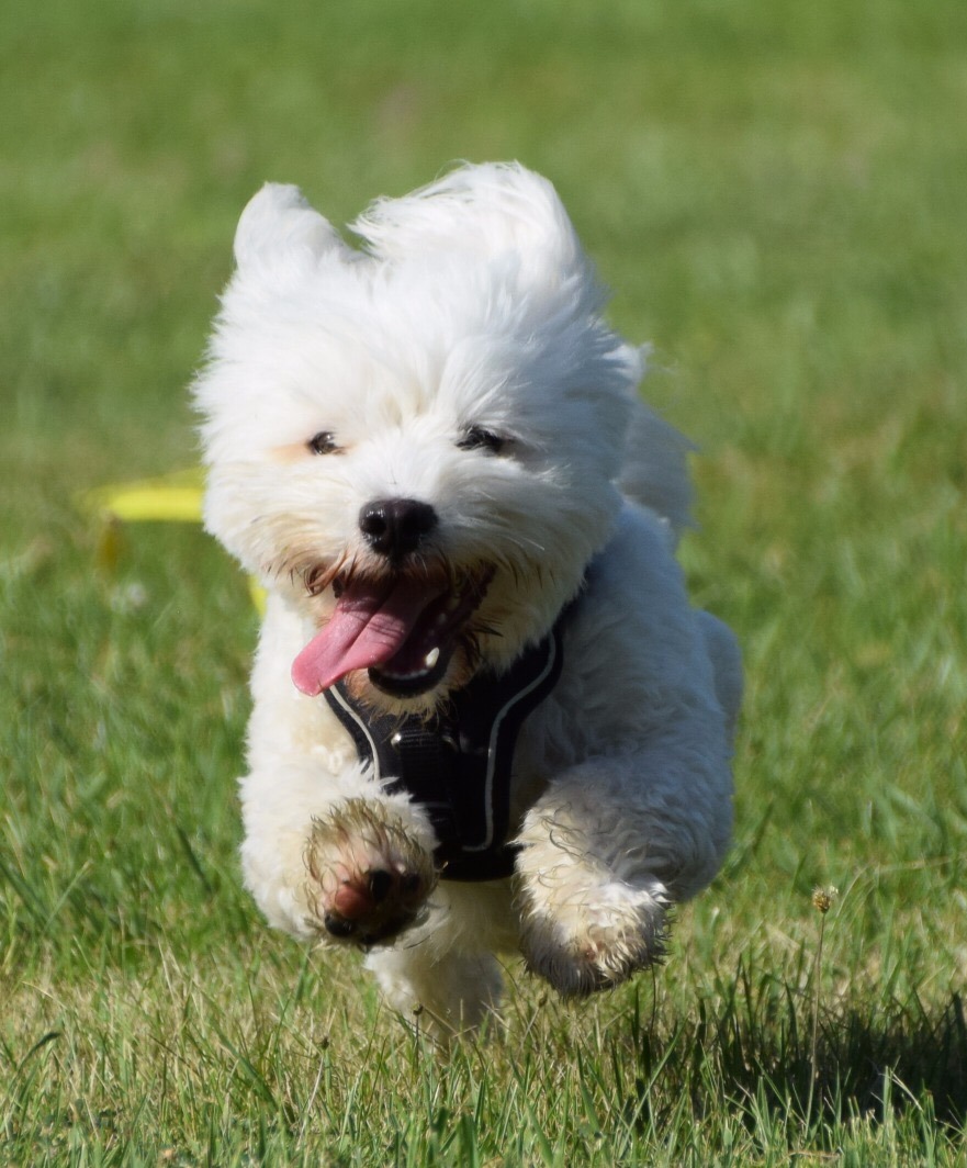 Der kleine Mann ist auch wirklich klug. Wer auch immer behaupten mag, ein "älterer" Hund lernt nicht oder schwer - das stimmt nicht! Er kann bereits Sitz, Platz, Bleib, Hier, folgt auf Pfiff, apportiert mit großer Freude und läuft sehr brav an der Schleppleine. Ich muss gestehen - noch geht es mit Leckerlie leichter, aber wir brauchen sie immer seltener.