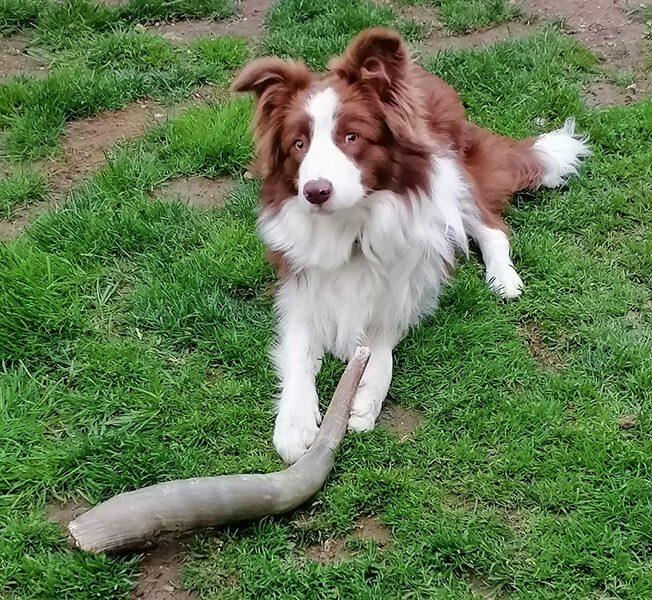 Er hat sich sehr gut eingelebt. Allerdings ist er nach wie vor total ängstlich auf der Straße. Lieber ist er im Wald und auf Feldwegen unterwegs.
