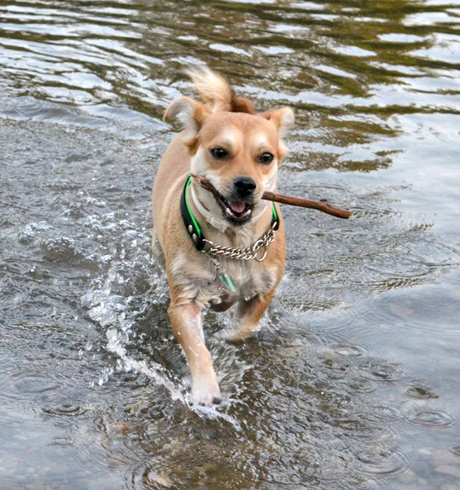 Im Sommer bekam er eine schöne Sommerfrisur, da er viel draußen ist und ihm relativ schnell heiß wurde. Man merkte schnell, dass es angenehmer für ihn war. Der großer Schwimmer war er nicht, er ist schon ins Wasser gegangen, allerdings nur so lange er stehen konnte, aber er musst immer die Steine retten :).
