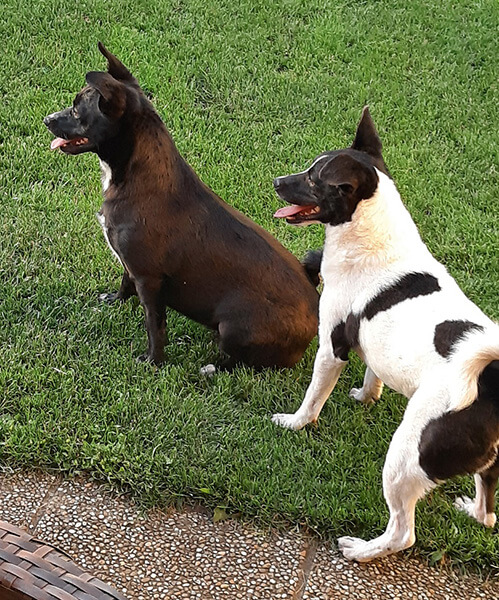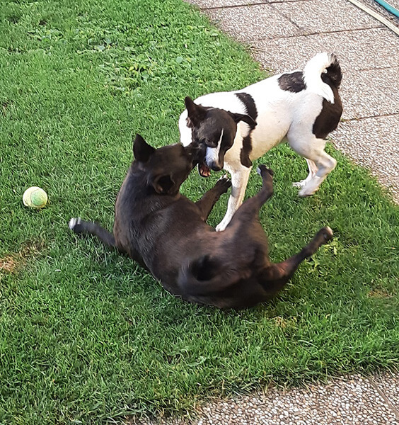 Sie spielen sehr viel miteinander, eigentlich dauernd, außer, sie schlafen. Beide sind treue Vasallen ihrer "Chefin" Nina. Nina hat Pepper sofort akzeptiert.