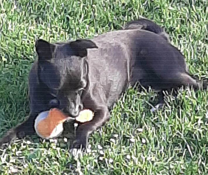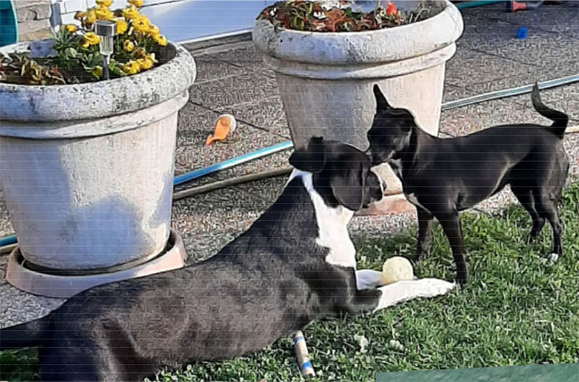 Ich habe zwei Nachbarn, August und Lino, das sind Hundi, so wie ich. Dann gibt es noch den Nachbarkater Fini. Der ist noch schwärzer als ich, aber ich bin dafür größer (ein bissi……..) ! Außerdem kommt uns immer ein Freund von Nina besuchen, der Maddox. Mit August und Lino schmuse ich durch den Gartenzaun und mit Nina und Maddox darf ich mitspielen. Ich trau mich auch schon, mit Maddox alleine zu spielen !